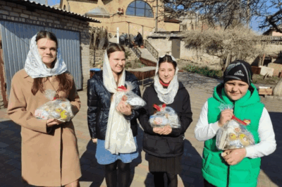 · Православные киевские волонтеры из «Парасольки» передали продуктовые наборы (крупы, подсолнечное масло, мясные консервы, сахар, чай) в Лиман на Донбассе. Также в Северск передали лекарства. Для семьи в селе Харьковской области оплатили дрова, продукты, средства гигиены.